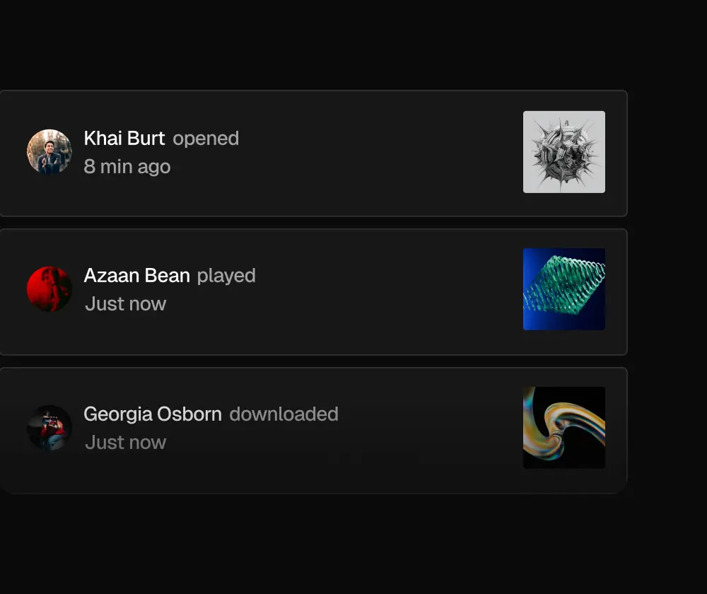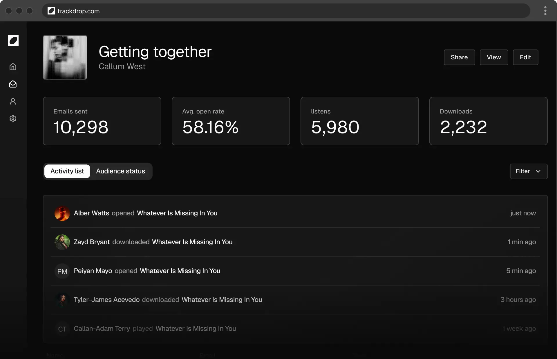 Use your Trackdrop dashboard to track real-time opens listens and downloads.