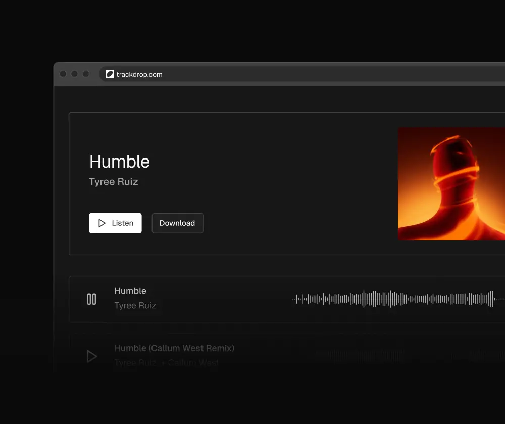 Email was never designed for modern music promo. Attachments are blocked, links get buried, and there is no reliable way to see who actually listened. For those simply wanting to get their music ‘out there’, Trackdrop gives anyone an easy way to listen, download and give feedback. For more sensitive releases, it adds identity-based access, listening controls, and clear visibility over who engages with your music. You can choose how open or how locked down each release should be.
