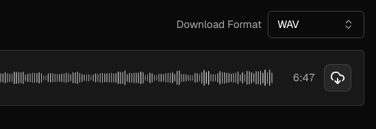 Next to each track in the list, you'll see a download icon (a cloud with a downward arrow). Click it to download that track in your chosen format.