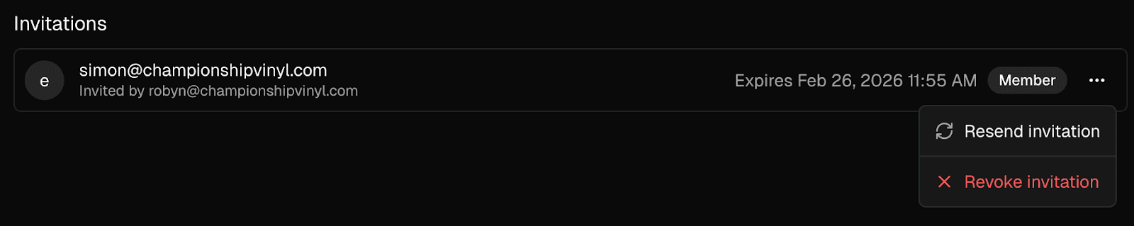 Click the More options (three-dot) button, and click Revoke invitation.