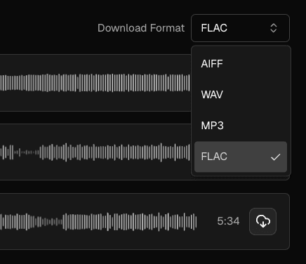 Trackdrop offers four audio formats to download, so you can choose whatever works best for your workflow: