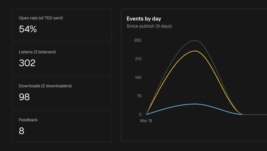 Once a promo has been sent, the Stats tab gives you a live view of how it's landing with recipients. No need to wait for end-of-campaign reports.